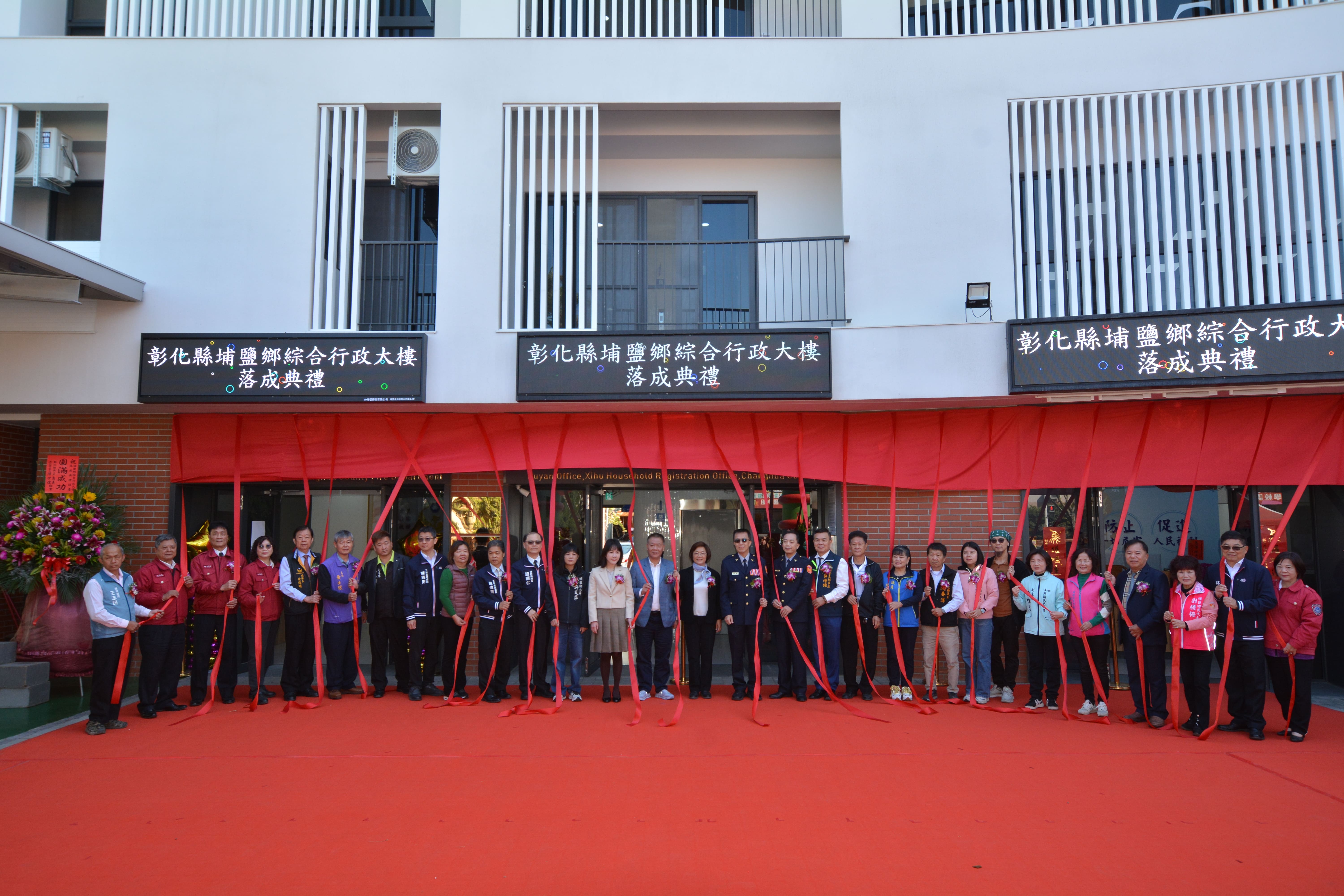 彰化縣埔鹽鄉綜合行政大樓於今(11)日舉行隆重落成典禮,由王惠美縣長主持啟用儀式,謝典林議長、謝衣鳳立法委員及多位議員與地方民意代表到場共襄盛舉,共同見證埔鹽鄉公共建設的重要里程碑。