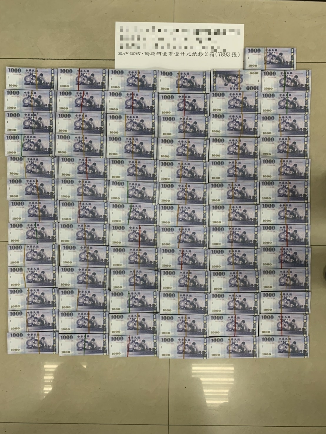 彰化縣警察局在專案期間,不止掃蕩幫派成員犯罪,亦針對其他案件發動查緝,於偵辦一起毒品案件執行搜索時,另案查獲千元偽鈔共7,893張,目前持續追查偽鈔來源及流向。