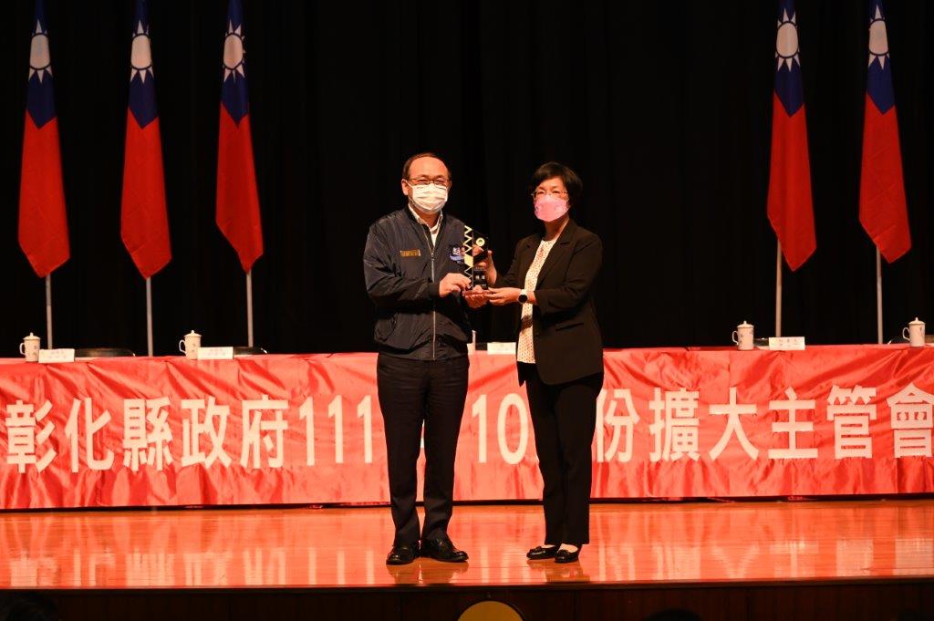 王縣長特別在25日縣務會報頒發獎座鼓勵本縣努力的治安團隊-警察局、消防局、社會處及環境保護局,期許團隊繼續努力,朝17年特優邁進,打造優質宜居的幸福美好城市。