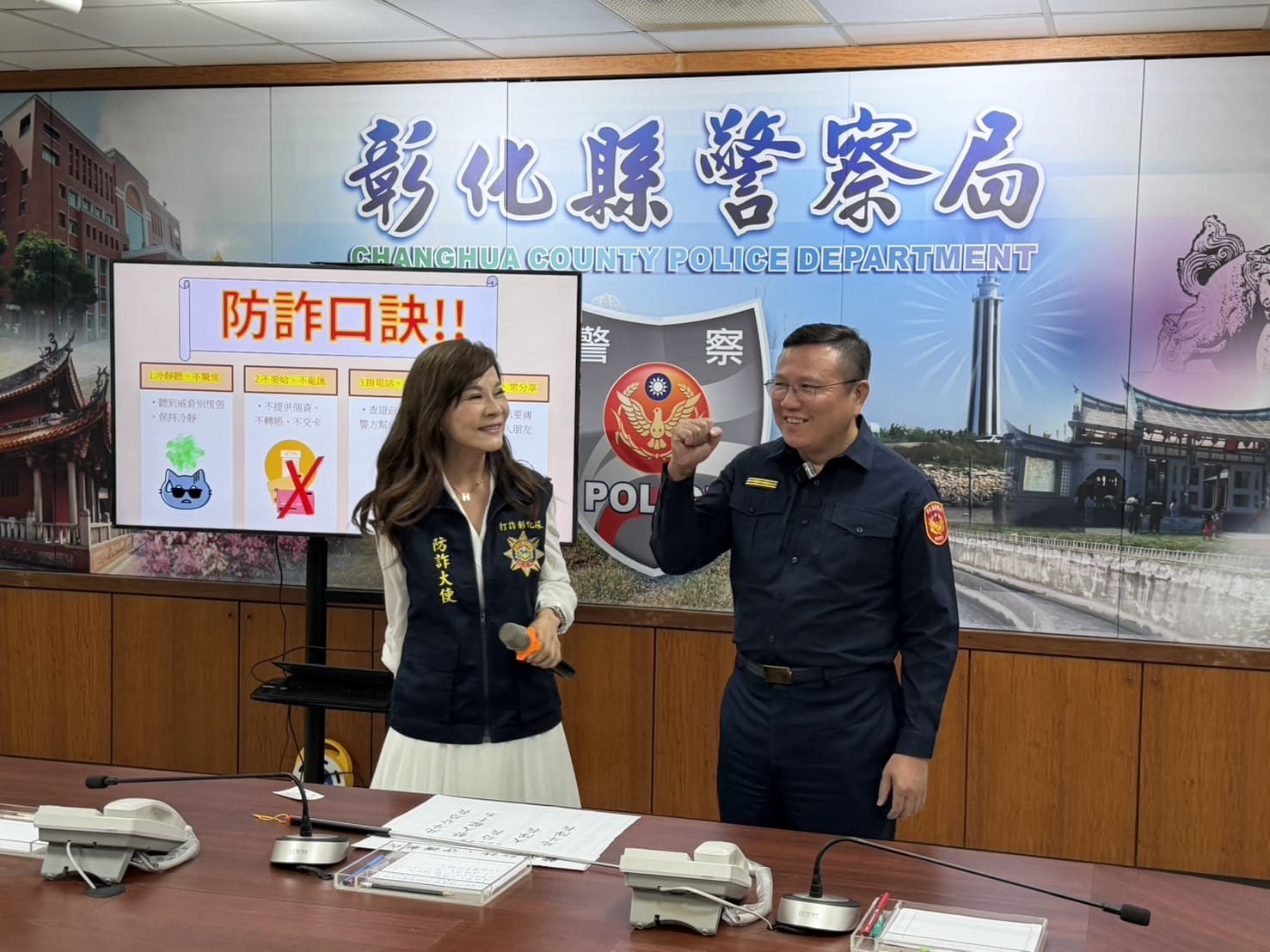 為加強民眾防詐意識,彰化縣警察局特別舉辦「10月份打詐記者會」,邀請國民歌后龍千玉擔任「防詐大使」,以親切形象向大家宣導「假檢警詐騙」防範觀念,龍千玉在活動中表示,近年假冒警察、檢察官的詐騙手法層出不窮,詐騙集團常以「帳戶涉及刑案」、「需要監管」為由,誘使被害人交出金融卡或匯款至所謂「監管帳戶」,導致民眾血本無歸。更以溫暖的語氣提醒大家:「接到可疑電話先冷靜,不要被嚇到,掛掉電話撥165查證最安全,不要輕信電話或LINE訊息中的威脅話術」,一起共同打造識詐、防詐、反詐的安全社會環境。