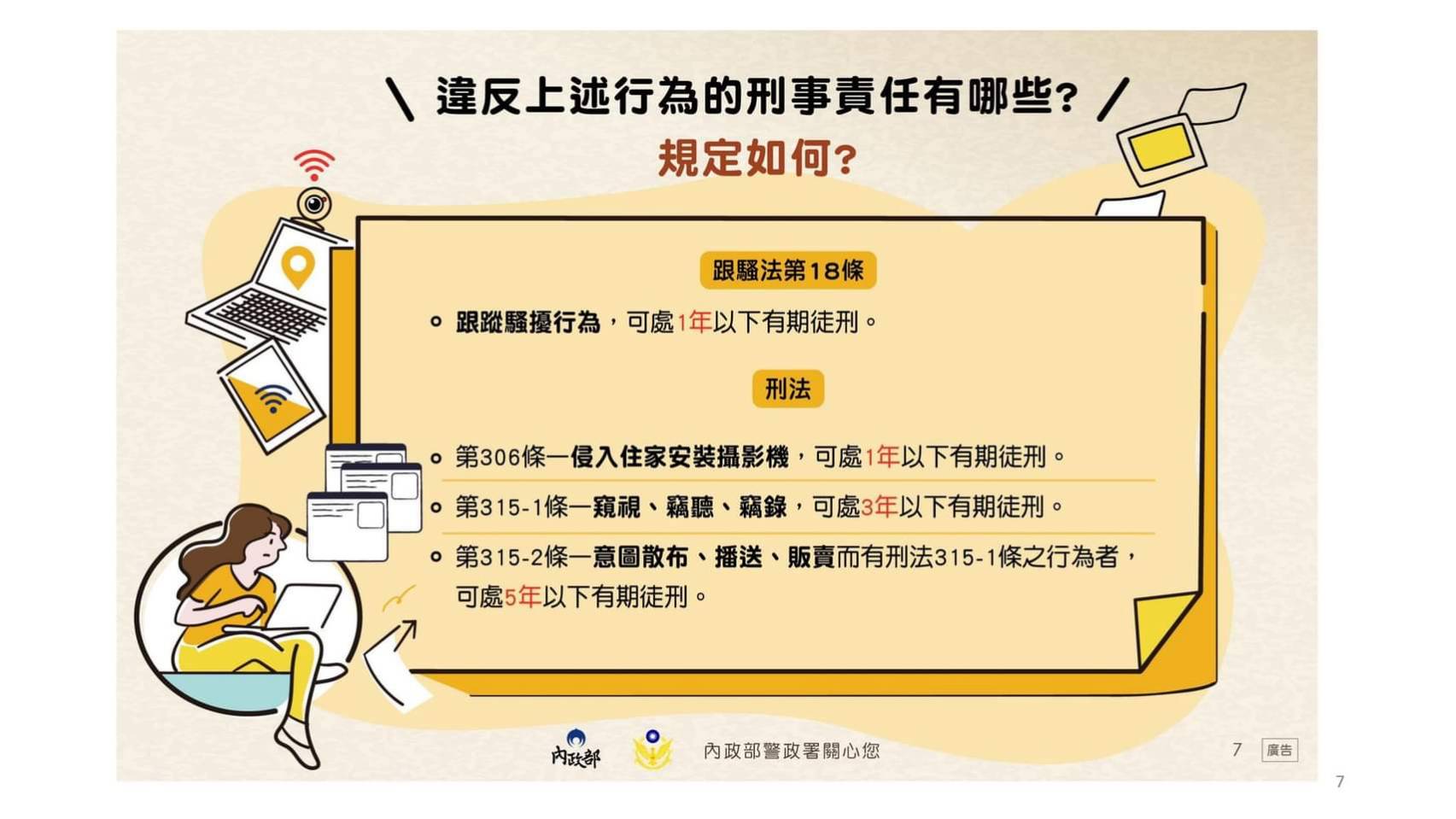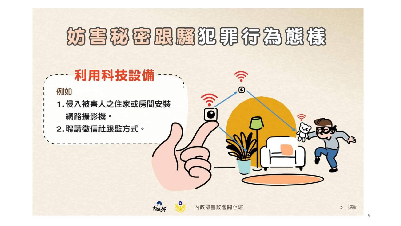 遇到跟蹤騷擾行為時,請報警!
