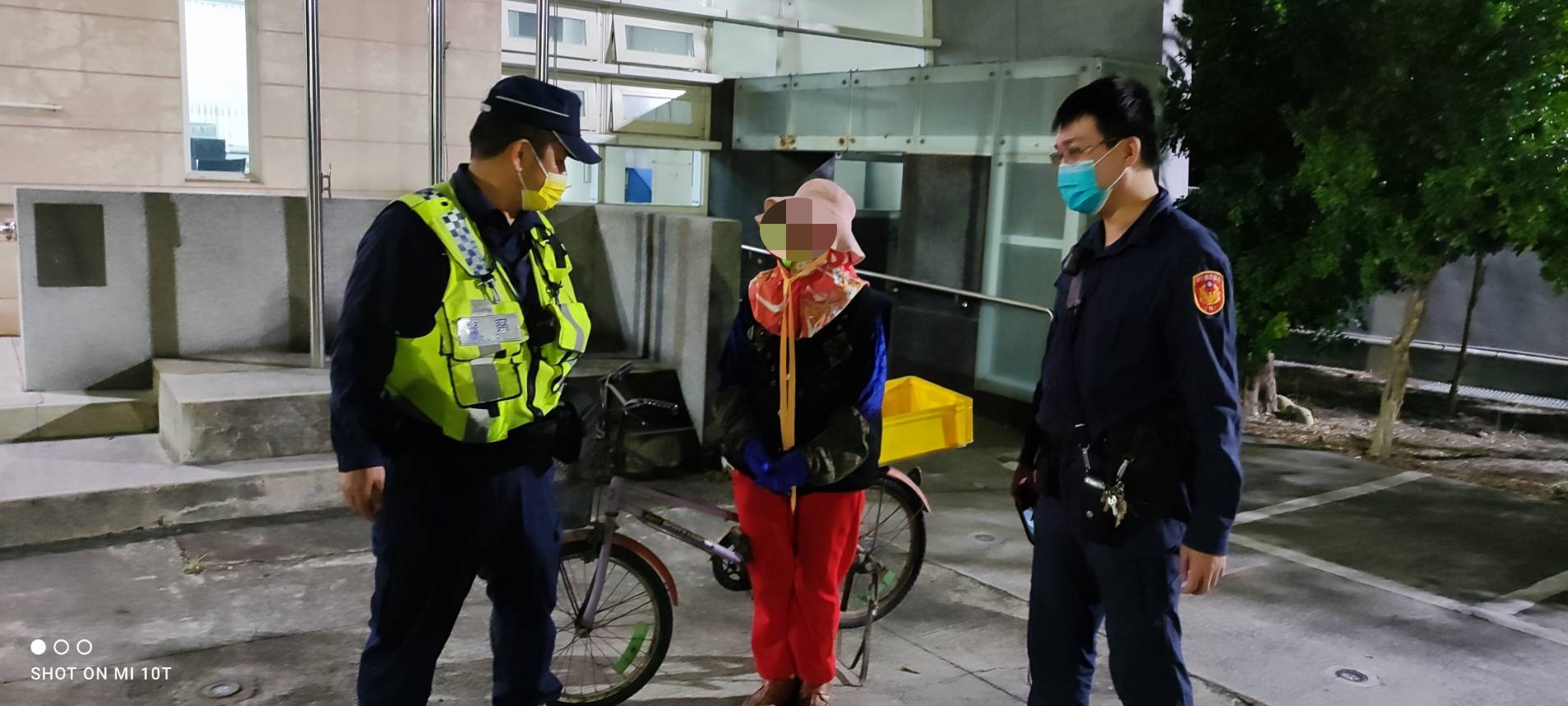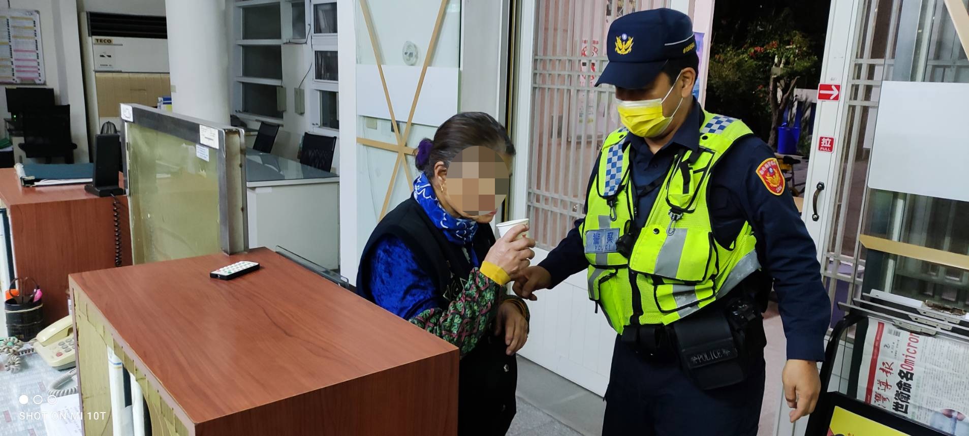 田中分局源泉派出所所長陳慶堂、警員田茂明2人,於110年12月4日18時至20時擔服巡邏勤務,於19時10分行經彰化縣二水鄉南通路與水森路口發現1名頭戴粉紅帽子牽著腳踏車歐姓老婦人傍晚時分佇立在路中央,來往車輛均放慢車速,有影響行車安全之虞,立即將老婦人帶到路邊安全處,經與老婦人對談表示:因騎乘腳踏車外出,前往雲林縣林內鄉離家太遠,返回經過該路口發現不熟悉,忘記回家方向,夜色漸暗致使心中感到徬徨無助而慌亂害怕,在警方當場安撫老婦情緒使其放心後,將老婦人帶回派出所休息,提供熱飲禦寒,經聯繫不上家屬,老婦又無法告知正確住址,透過警用行動載具得知住二水鄉合和村,遂載送老婦人及腳踏車返家,交由兒子董男照顧。