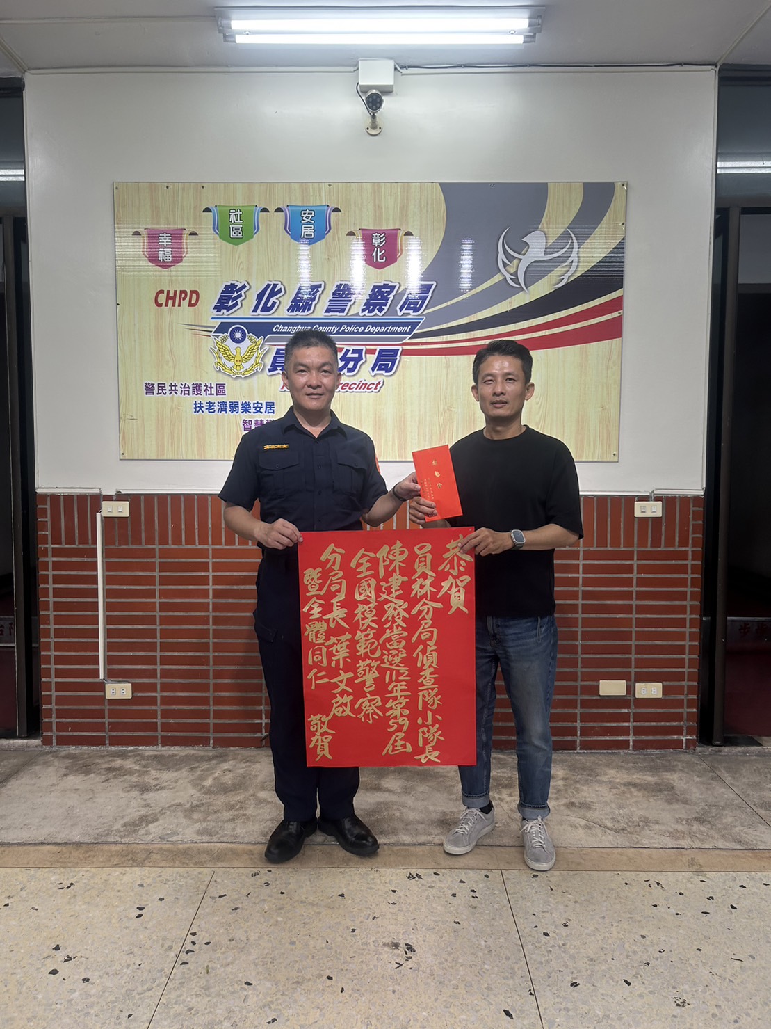 分局長葉文啟特於分局前張貼紅榜及頒發獎勵金,以表祝賀之意。