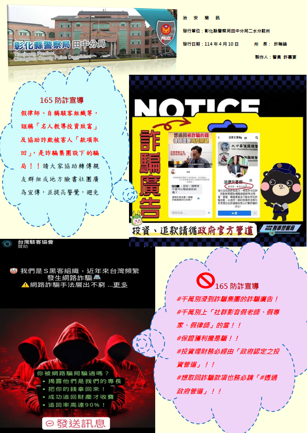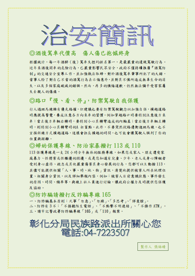 芳苑分局114年第2季治安簡訊