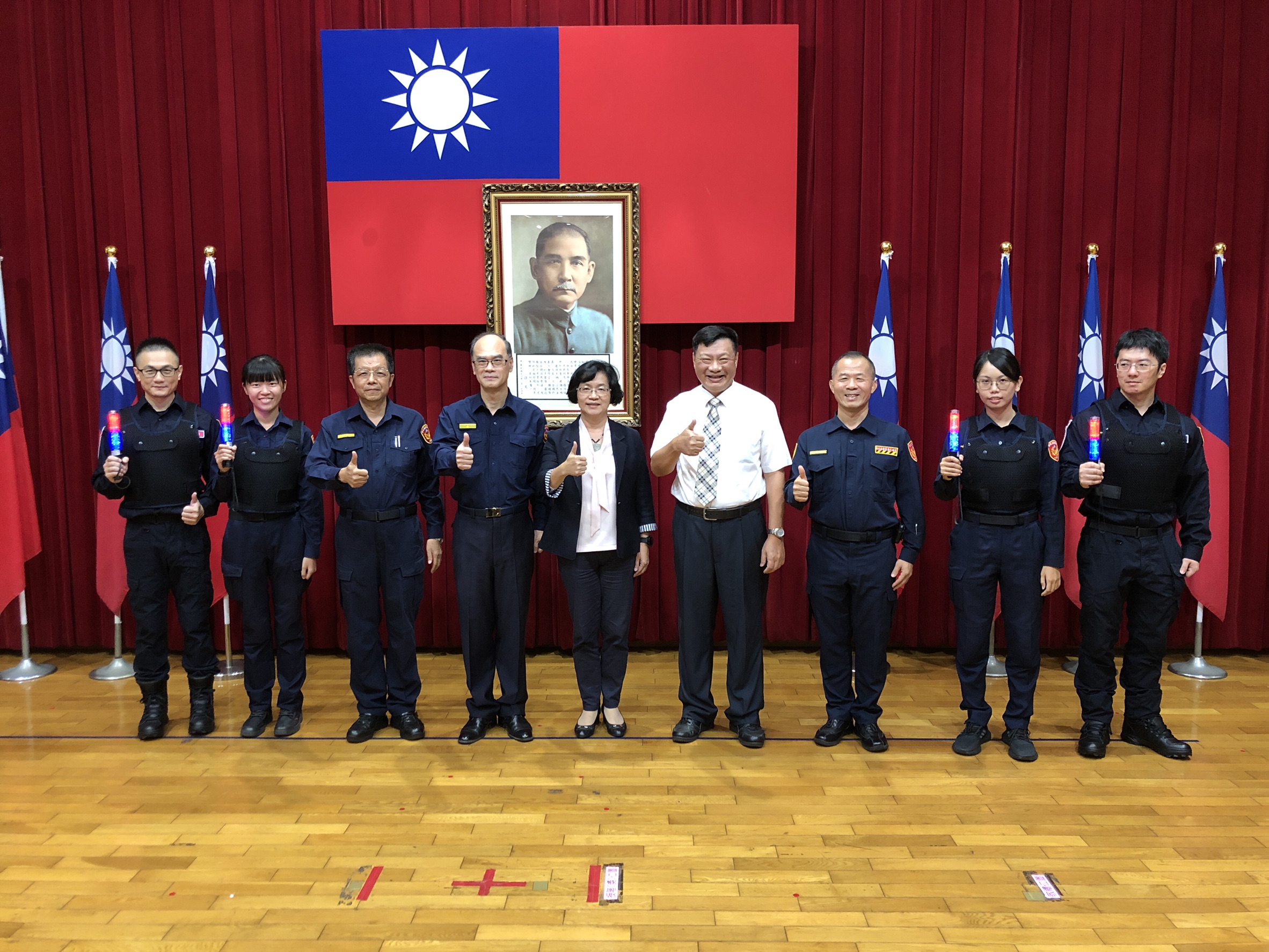Sun Jen Textile Co., Ltd. donated 420 traffic batons to CHPD, and the Deputy Director-General of CHPD, Lai, Hong-Fong and the Captain of Traffic Police Brigade, Lin, Shi-Ming represented to receive the donation.