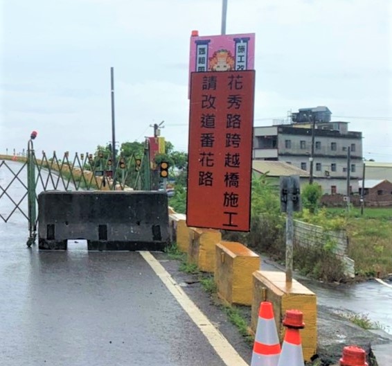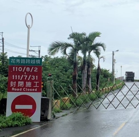 用路注意,花秀路跨越橋封閉,欲行駛的民眾請即早改道喔!