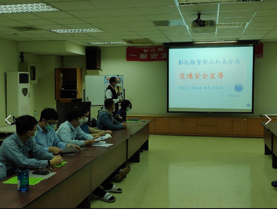 於今(22)日由第五組組長吳銘添、巡官鄭育安,於彰濱工業區「日友環保科技(股)有限公司」辦理交通安全宣導講習,藉由該公司進行員工教育訓練機會,提倡防禦駕駛、酒後不開車,與遇交通事故避免肇事逃逸自保方法等內容,並播放「彰化縣警察局交通安全案例宣導影片常見違規肇事案例」,期能提升該公司員工正確、安全之駕駛觀念,以收促進交通安全之成效。