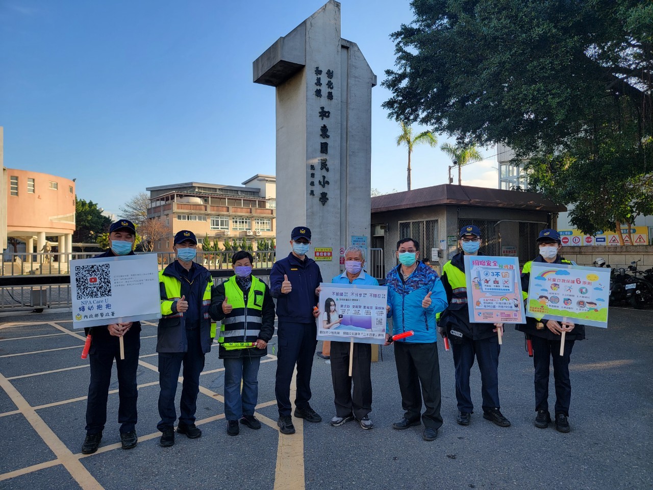 寒假結束了!新學期於今(13)日正式開學,為維護學童人身及交通安全,彰顯對兒童保護之用心及安全維護,本分局啟動「護童勤務」,結合民力、學校導護媽媽及導護老師,共同於學童上、放學時段加強校園周邊巡邏及守望勤務,提高見警率。本分局分局長廖志明及副分局長王次郎及詹廷育,今日亦分別前往和東國小及和仁國小視導同仁執行護童情形,現場配合婦幼安全及交通宣導,提醒學童通過路口要「停、看、聽」,駕駛人亦應減速慢行,禮讓行人,並提醒學童上下課要結伴而行,不要隨便與陌生人來往、不收取來路不明的食物跟禮物,以保護自己安全。