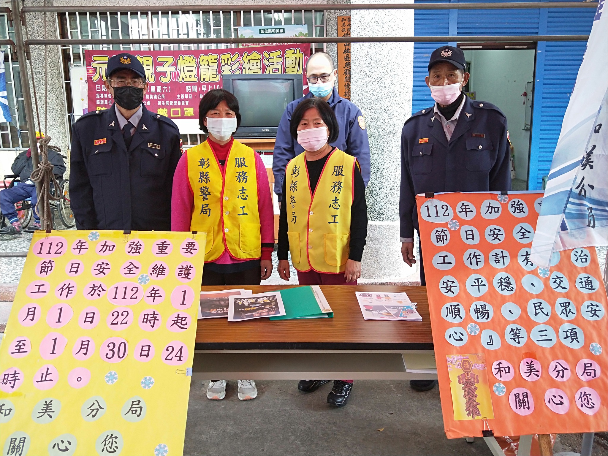 鐵山社區發展協會舉辦「112年鴻兔大展新春揮毫贈春聯暨宣導活動」,和美分局嘉犁派出所前往交通疏導暨112年加強重要節日安全維護宣導工作