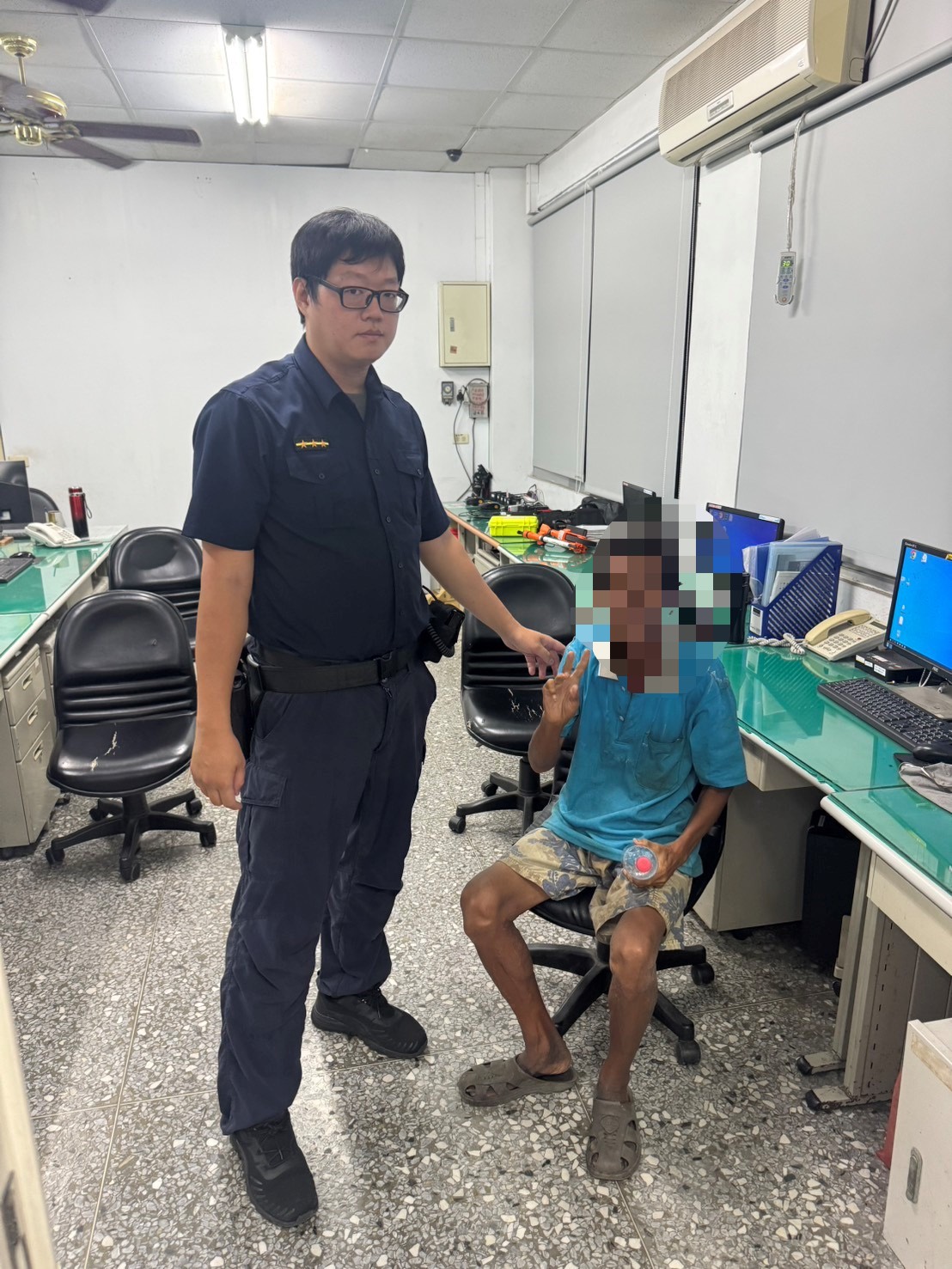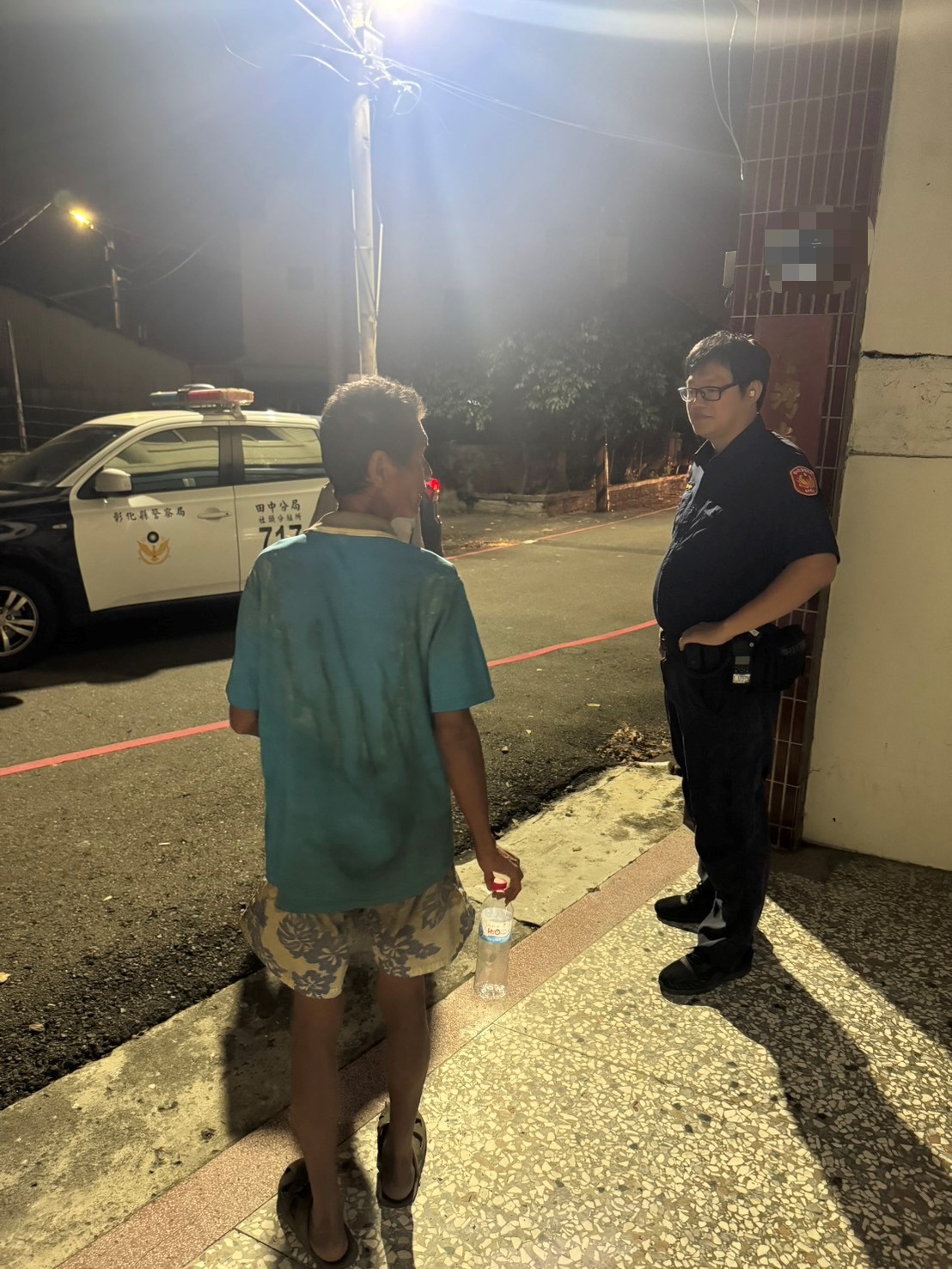 本分局社頭分駐所警員蕭睿哲、鄧鈞懋擔服10月17日16至18巡邏勤務,於17時51分許接獲110通報,指稱在社頭鄉鴻門巷皮革工廠紅綠燈處,有一名迷失長者需要警方協助。經現場了解該名老翁疑似外出散步時突然忘記返家的路,經警方耐心詢問基本資料並透過系統查證,確認其為居住於埔心鄉,由於天色昏暗,蕭員等2員擔心其安危,特地駕車將老翁平安護送返家。老翁對警方的即時協助深表感謝。